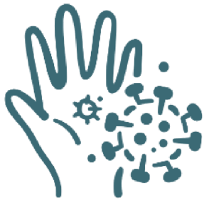 周囲にあるウイルスが水分を通り道にして吸い寄せられ、磁石のように手にくっついてしまいます。