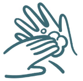 石けんで指の間や手首まで洗い、流水でしっかりすすぎます。